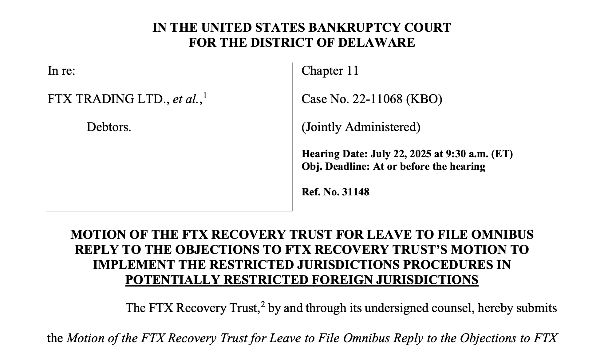Имущество банкротства Cryptocurrents Exchange FTX ищет задержку в суде штата Делавэр, поскольку он работает, чтобы ответить на более чем 90 возражений, оспаривающих ее предлагаемую остановку на выплаты в определенных «иностранных юрисдикциях», согласно судебному документу, рассмотренному Cointelegraph.