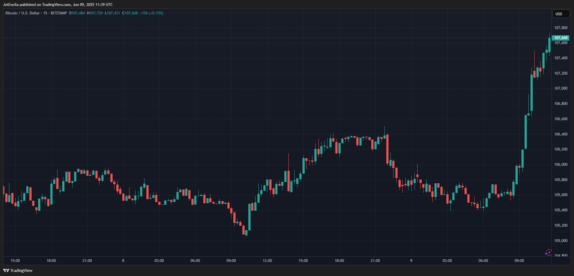 BTC в настоящее время торгуется на уровне 107 668 долларов. Диаграмма: Tradingview