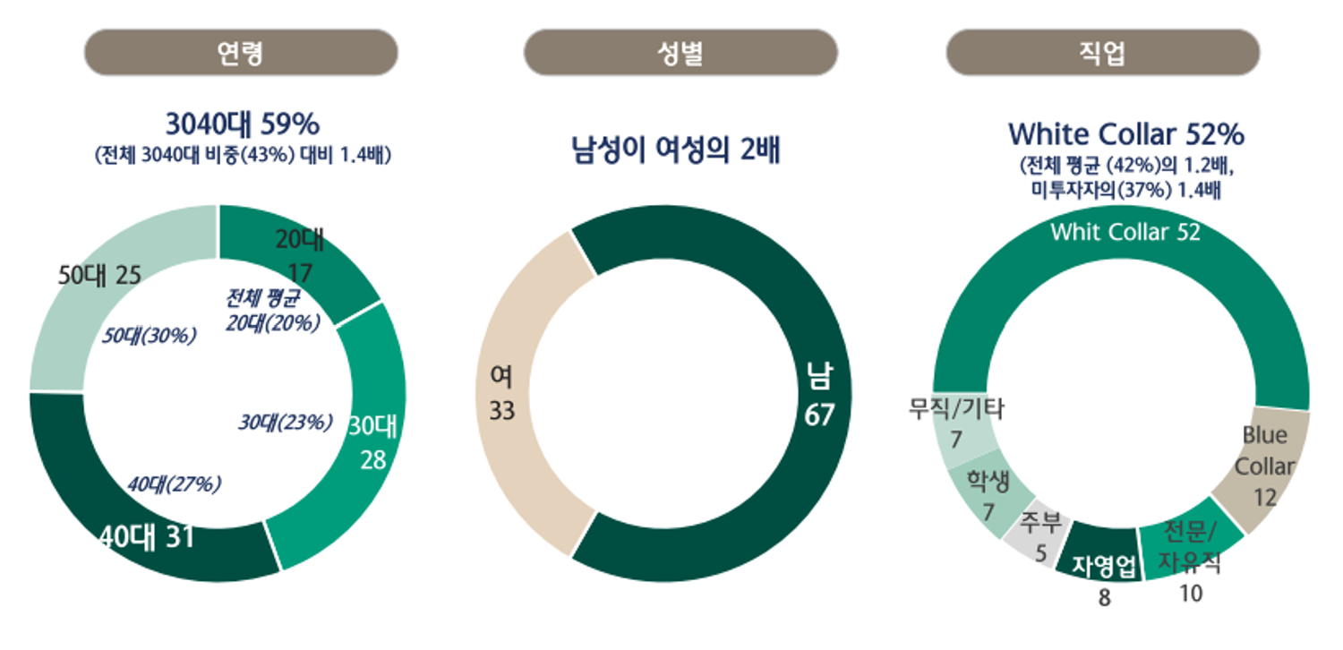 Инвестиционные модели также созревают. Доля инвесторов, регулярных покупок, выросла с 10% до 34%, а среднесрочная торговля увеличилась с 26% до 47%, в то время как краткосрочная торговля немного упала.