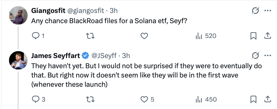 Сейффарт сказал: «Все они включают в себя язык, я полагаю,». В то время как Сейффарт согласился с точкой зрения пользователя X, что «извлеченные уроки» из прошлых разрешений могут помочь ускорить процесс, ссылаясь на точечные биткоин и эфирные ETF, он сказал, что такие уроки не распространяются.