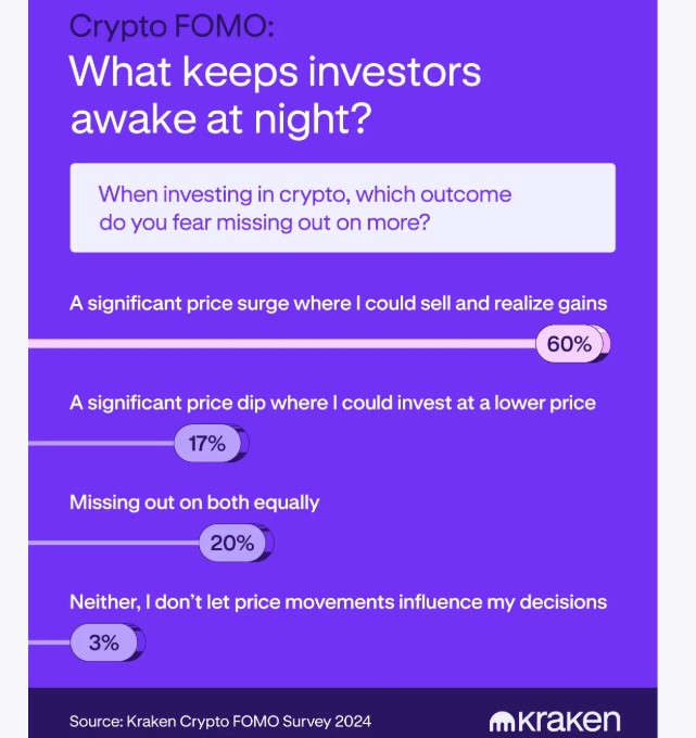 4 декабря криптовалютная биржа Kraken опубликовала результаты своего исследования FOMO по криптовалюте Kraken за 2024 год, сосредоточив внимание на страхе упустить выгоду (FOMO) и страхе, неуверенности и сомнениях (FUD) среди держателей криптовалюты в Соединенных Штатах.