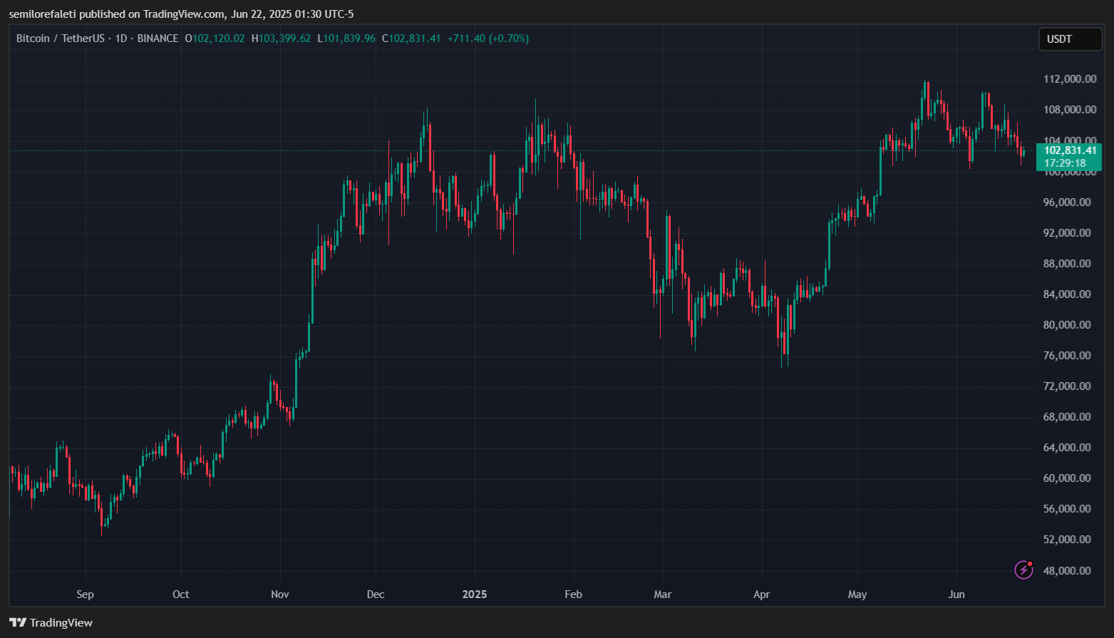 Биткоин (BTC) зарегистрировал небольшой рост за последние несколько часов после того, как президент США Дональд Трамп объявил о успешном авиаударе по иранским ядерным учреждениям, что направлено на то, что они направлены на деэскаляцию растущей напряженности на Ближнем Востоке после нескольких дней конфликта между Ираном и Израилем.