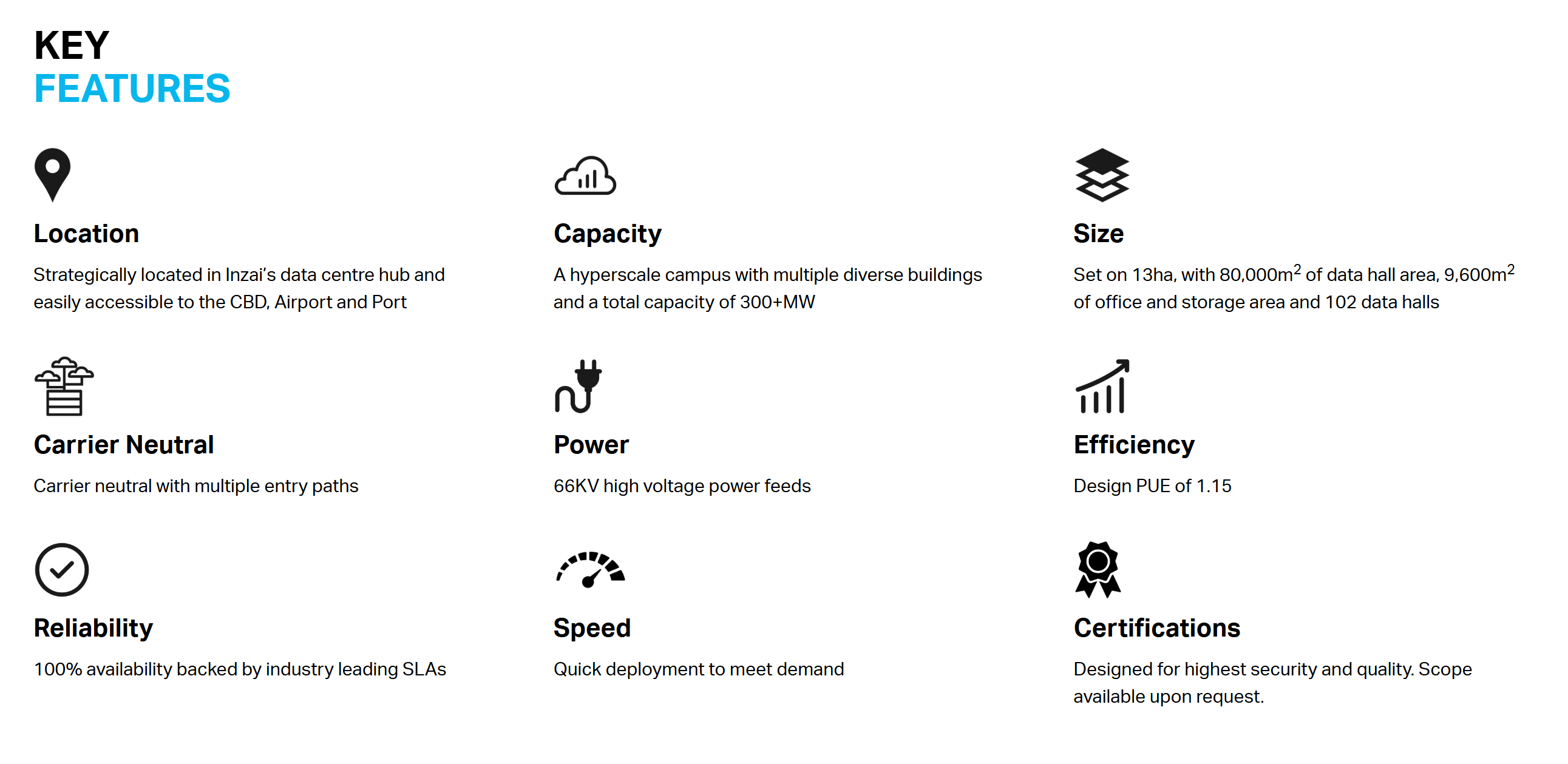Ожидается, что после полного завершения строительства четыре японских кампуса компании, включая TOK1, TOK2, OSK1 и OSK2, будут обеспечивать около 530 МВт совокупной мощности, что сделает платформу одной из крупнейших сетей гипермасштабных центров обработки данных в стране.