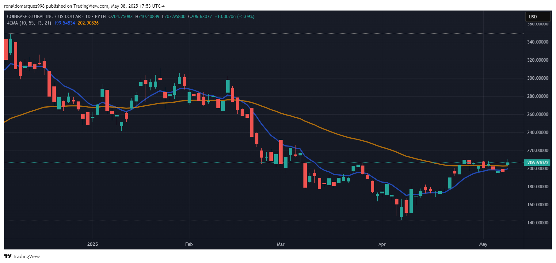 Ожидается, что транзакция будет завершена к концу года, сроки, которая уже положительно повлияла на акцию Coinbase, а акции растут более чем на 5% к отметке 206 долларов США после объявления.