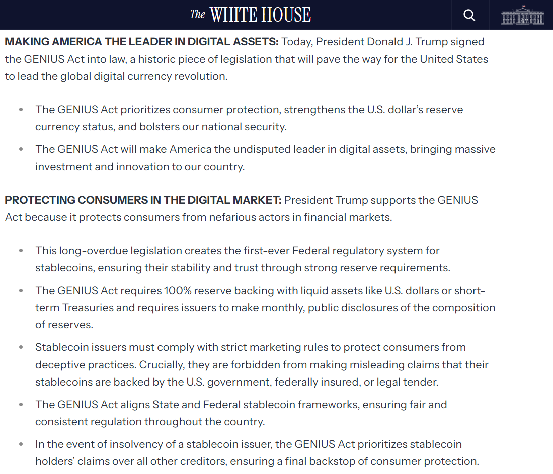 Законодательство, которое устанавливает нормативно -правовую базу для рынка стаблекоина в 260 миллиардов долларов, было подписано в пятницу президентом США Дональдом Трампом.