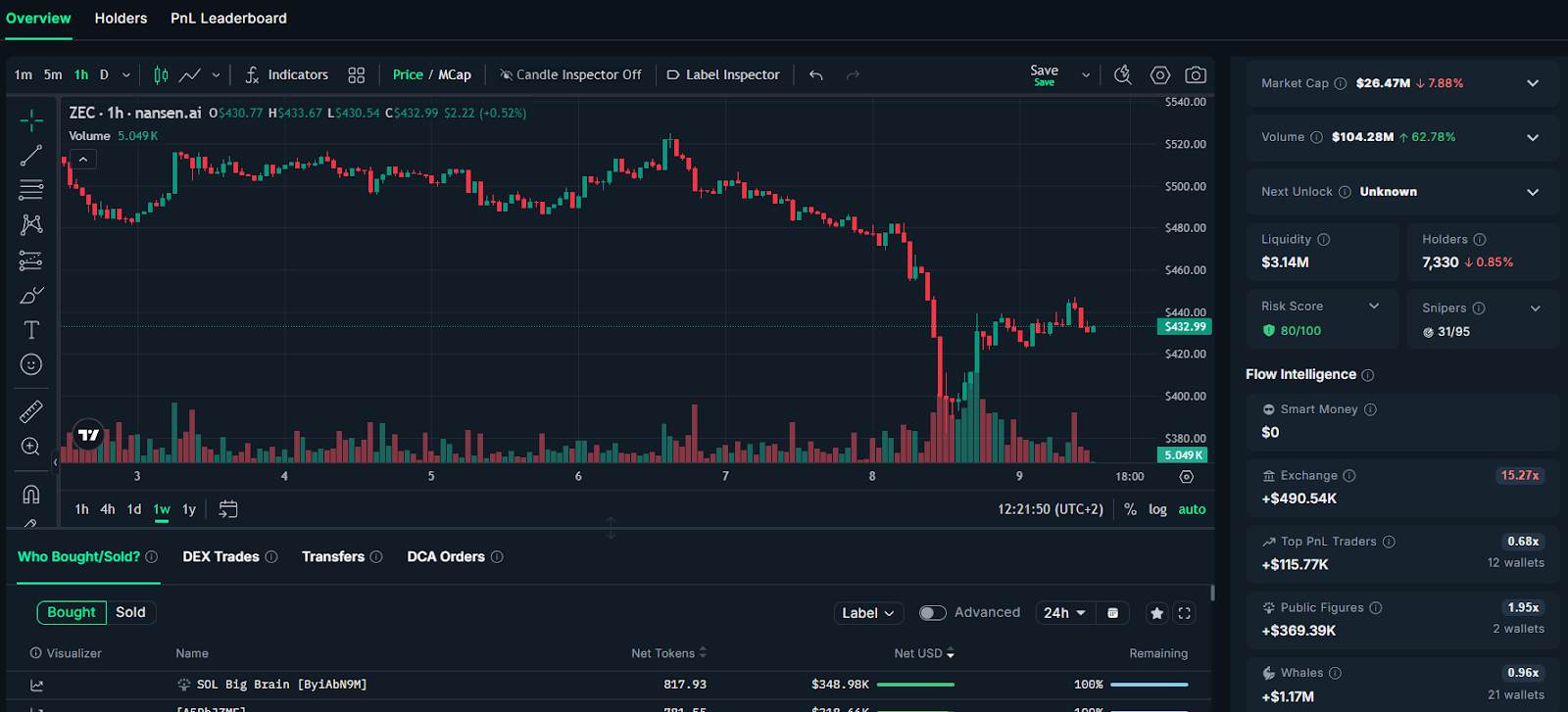 Тем не менее, киты не были обеспокоены спором о корпоративном управлении, поскольку за прошедшую неделю они добавили в общей сложности спотовые токены ZEC на 1,17 миллиона долларов, а новые кошельки добавили 2,14 миллиона долларов, согласно данным криптовалютной аналитической платформы Nansen.