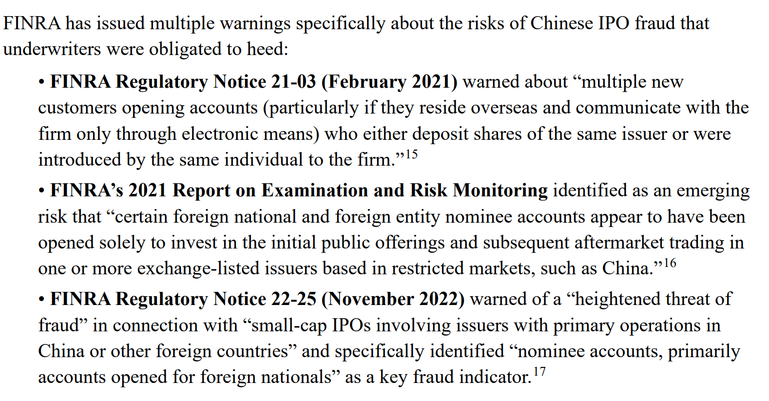 Китайские компании предположительно использовали IPO в США, чтобы взвинтить цены на свои акции посредством скоординированной торговли и продвижения, а затем продали акции розничным инвесторам, прежде чем акции рухнули. В некоторых случаях десятки аккаунтов якобы размещали почти идентичные ордера на покупку выше цены IPO, временно повышая оценку, прежде чем инсайдеры продали свои доли.