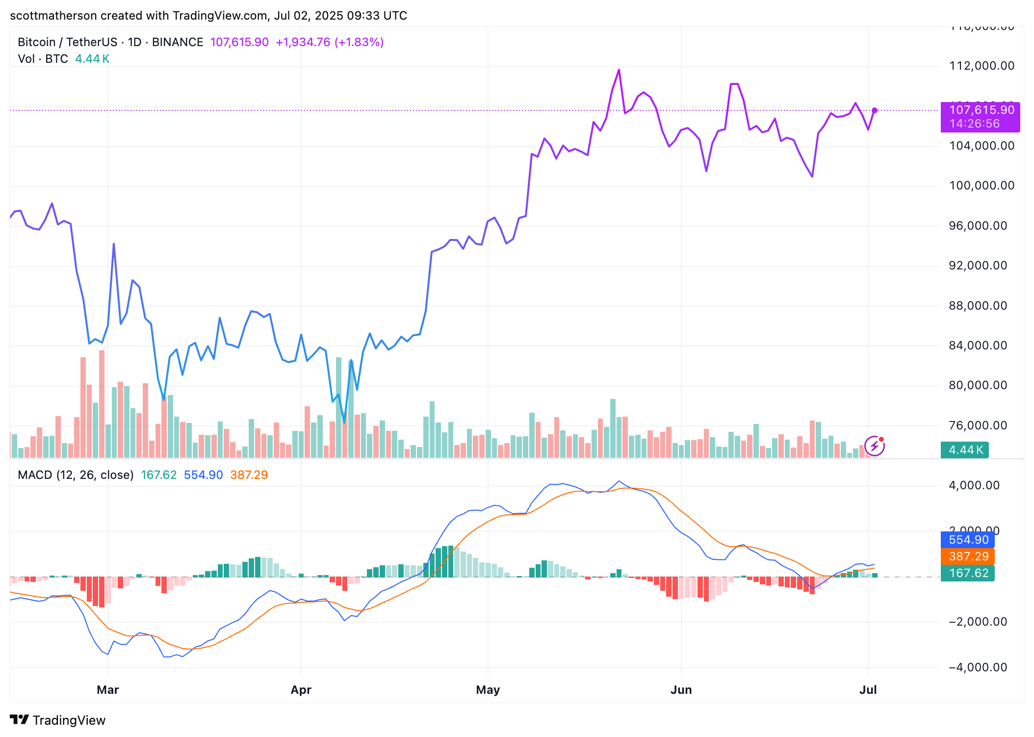 BTC Trading на уровне 107 615 долларов на 1D -диаграмме |Источник: btcusdt на TradingView.com