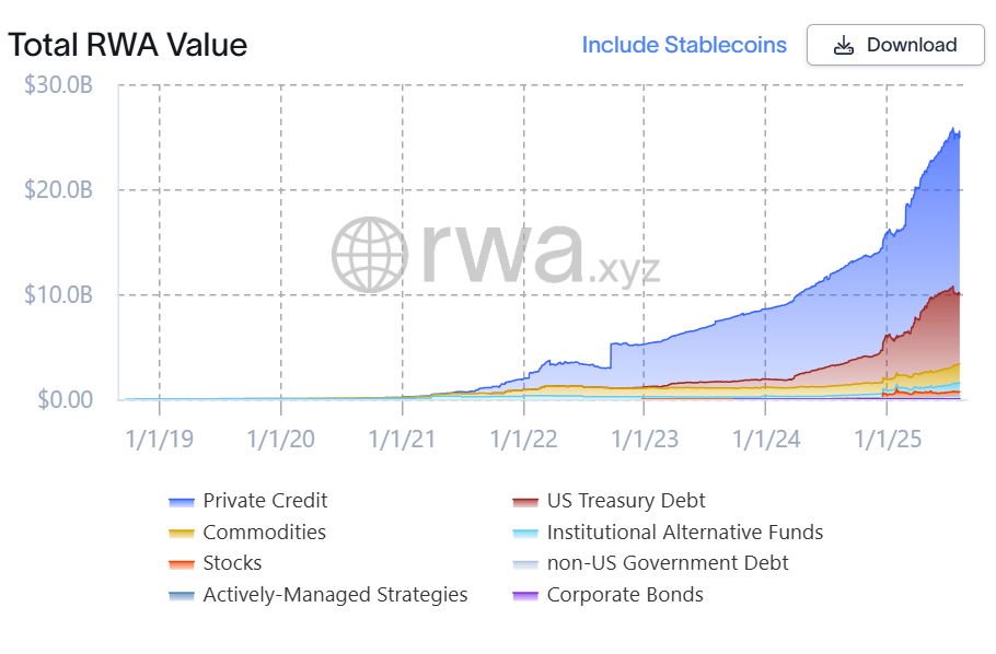 Токенизированные финансы становятся одной из наиболее влиятельных тенденций, формирующих индустрию криптовалют в 2025 году, с ростом токенизации RWA, вызванного растущим спросом на такие продукты, как частные кредиты и казначейские облигации США.