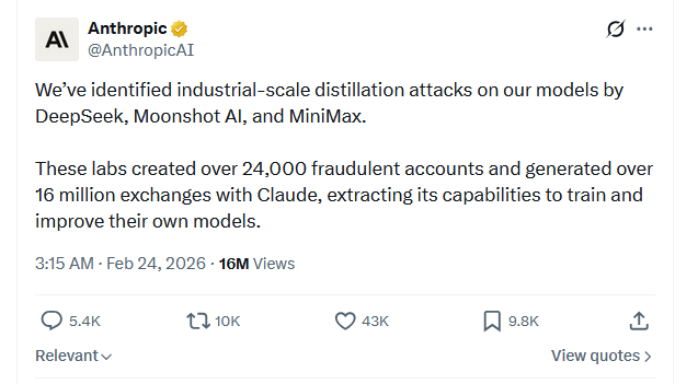 Anthropic обвинила эту троицу в организации «более 16 миллионов обменов» в сочетании с искусственным интеллектом Claude AI на «приблизительно 24 000 мошеннических счетов».