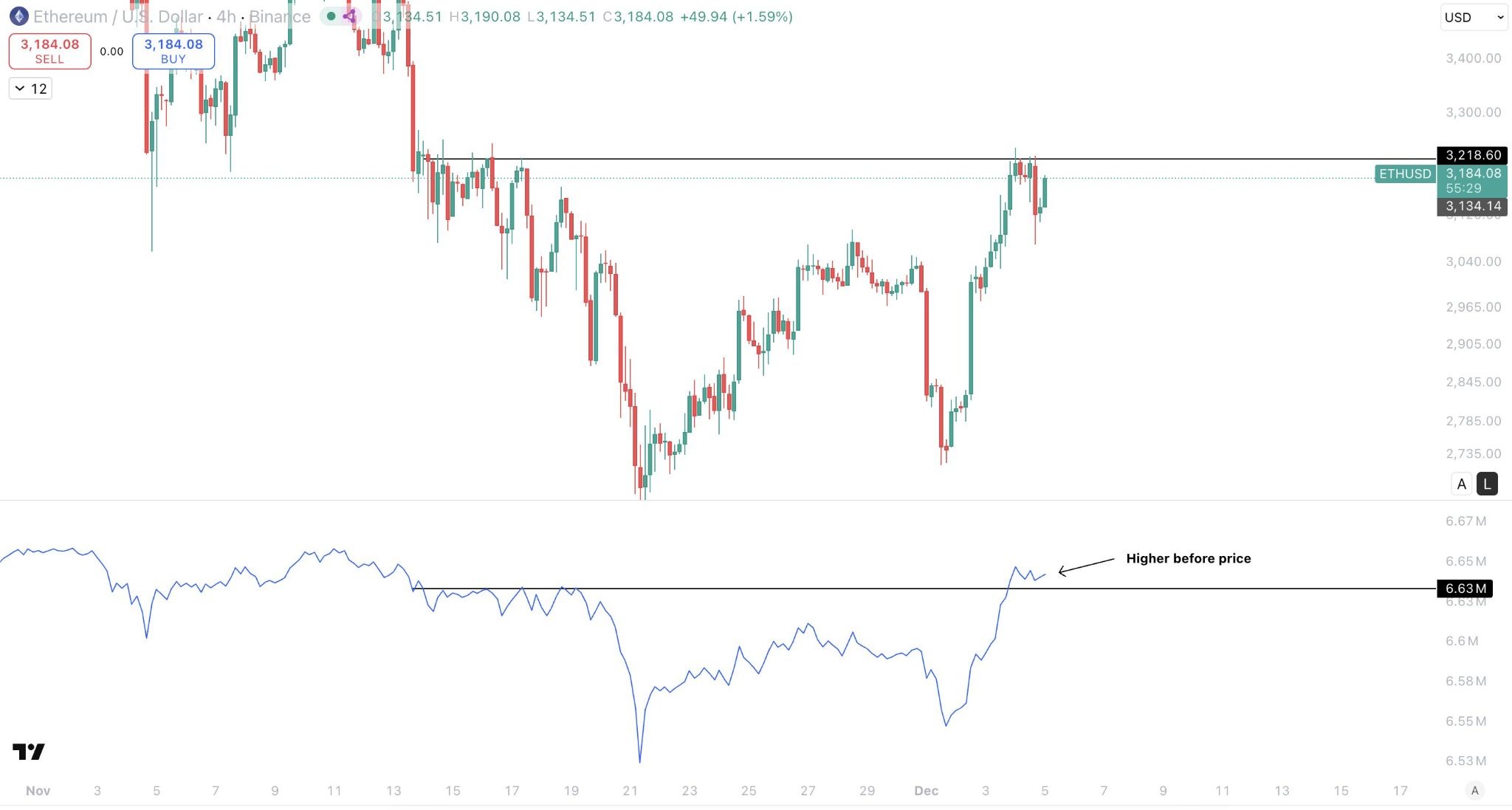 Цены на эфир в течение последних пяти дней в основном держались выше 3000 долларов, но не смогли преодолеть сопротивление на уровне 3200 долларов.