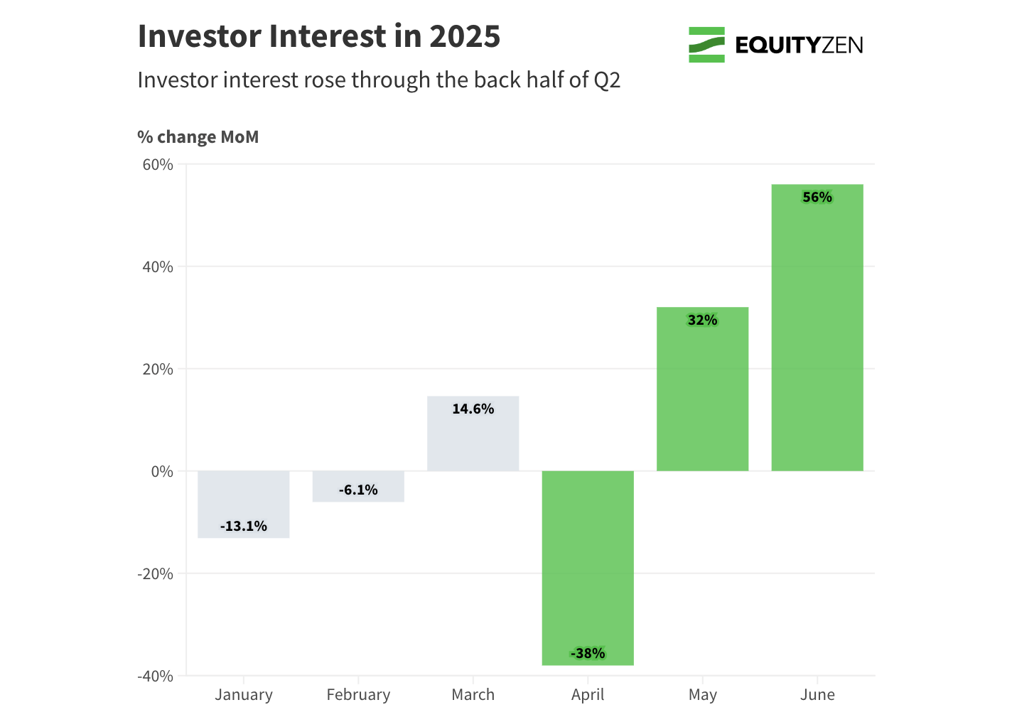 Согласно данным Equityzen, проценты в инвестициях до IPO восстановились в последние месяцы, при этом проценты инвесторов в июне выросли на 56%, что является самым высоким уровнем с марта 2023 года.