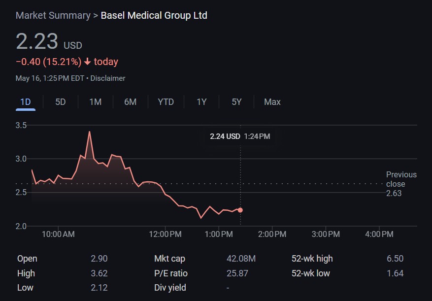 Акции Basel Medical Group снизились примерно на 15% после того, как медицинская компания объявила о планах купить биткоин в размере 1 миллиарда долларов для своего корпоративного казначейства.