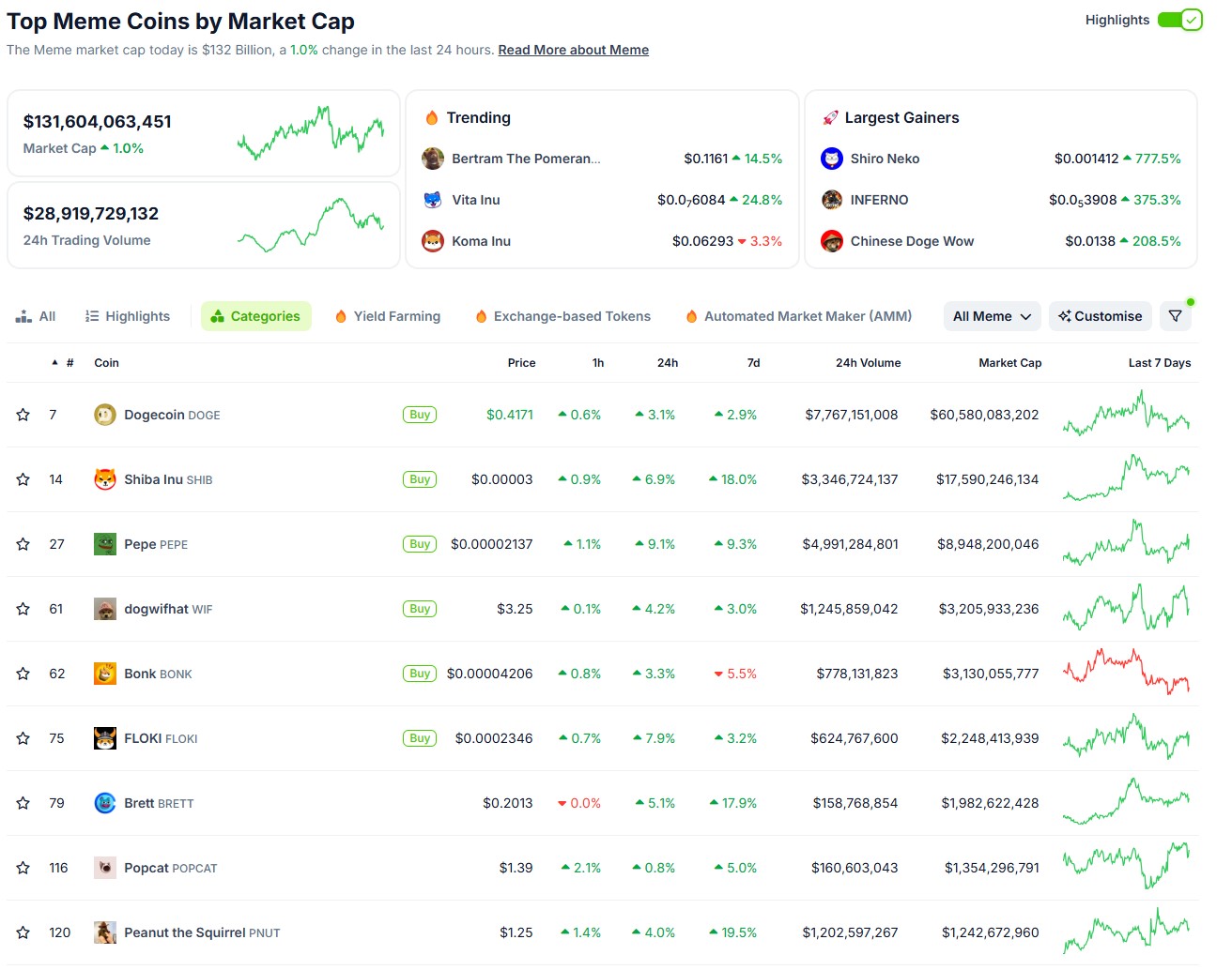 Еще листинги мемкоинов