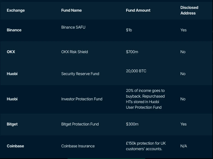 Согласно новому отчету, опубликованному аналитической фирмой Nansen 14 июня, наиболее авторитетные криптовалютные биржи приняли средства для защиты пользователей на фоне краха FTX. Вместе такие биржи, как Binance, OKX и Bitget, имеют более 2 миллиардов долларов в номинальных фондах защиты фиата. Между тем, страховой фонд Huobi обеспечен 20 000 Биткоин (BTC), в то время как Coinbase предоставляет страхование на сумму до 150 000 британских фунтов (189 140 долларов США) для счетов клиентов из Великобритании. Исследователи Нансена писали: