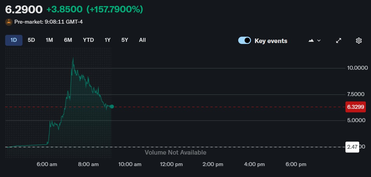 По данным Yahoo Finance, цены на акции добычи битов выросли до 11 долларов США на предварительном рынке, что на 350% больше, чем в среду в 2 доллара США. На момент написания цена акций вернулась до 6,29 доллара.