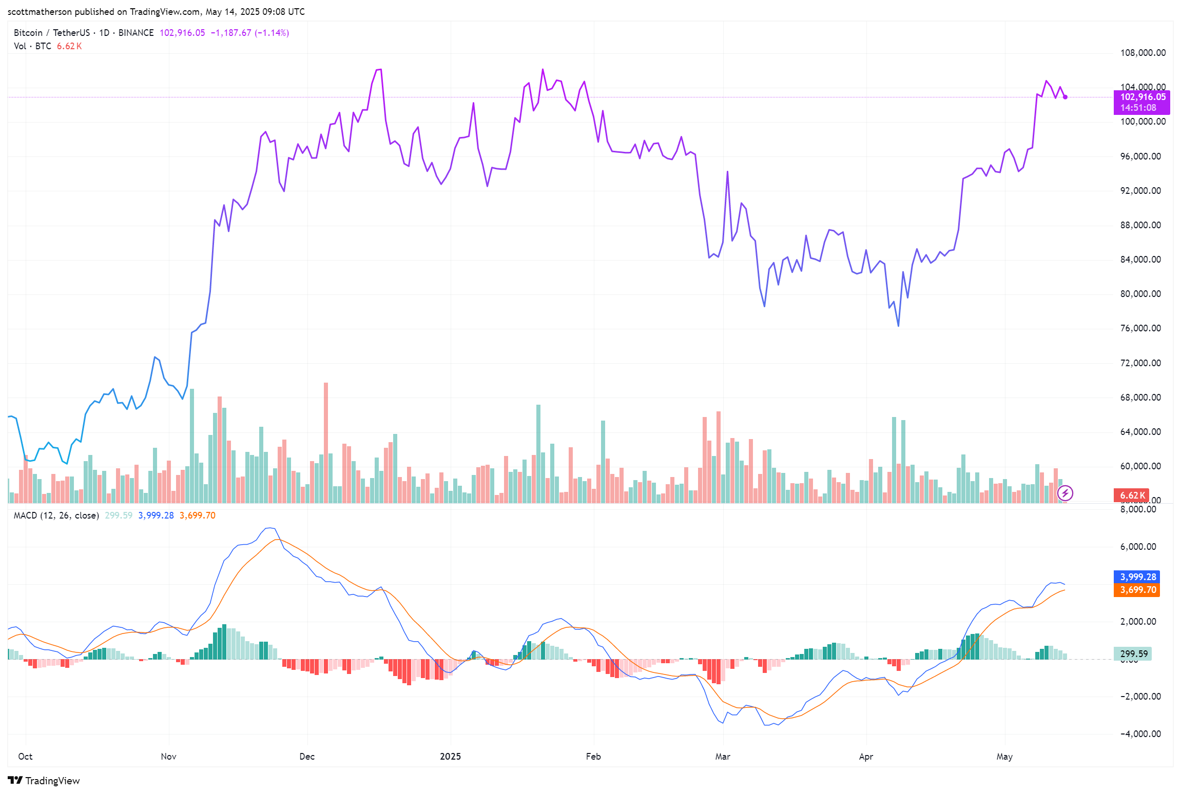 БиткоинBTC Торговля в 102 916 долл. США на 1D -диаграмме |Источник: btcusdt на TradingView.com
