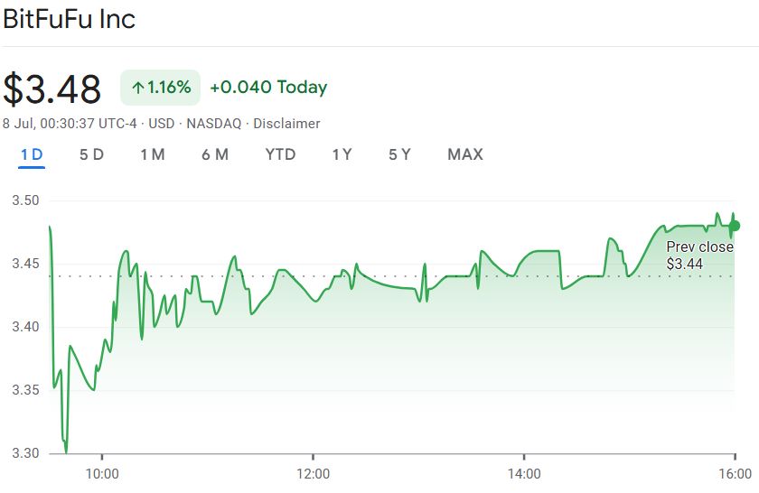 Акции в Bitfufu (FUFU) закрыли торговую сессию в понедельник, выросли на 1,16% на 3,48 долл. США. За последние пять дней цена его акций выросла на 8,82%.