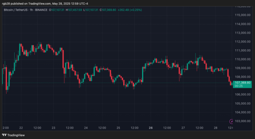 С тех пор, как он достиг своего нового ATH, Биткоин двигался вбок, торгуясь между уровнями 106 800 до 109 700 долл. США.