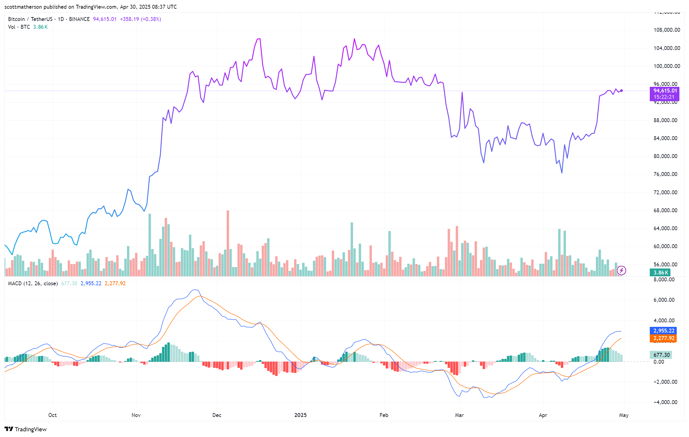 BTC Trading по цене $94 615 на 1D -диаграмме |Источник: btcusdt на TradingView.com