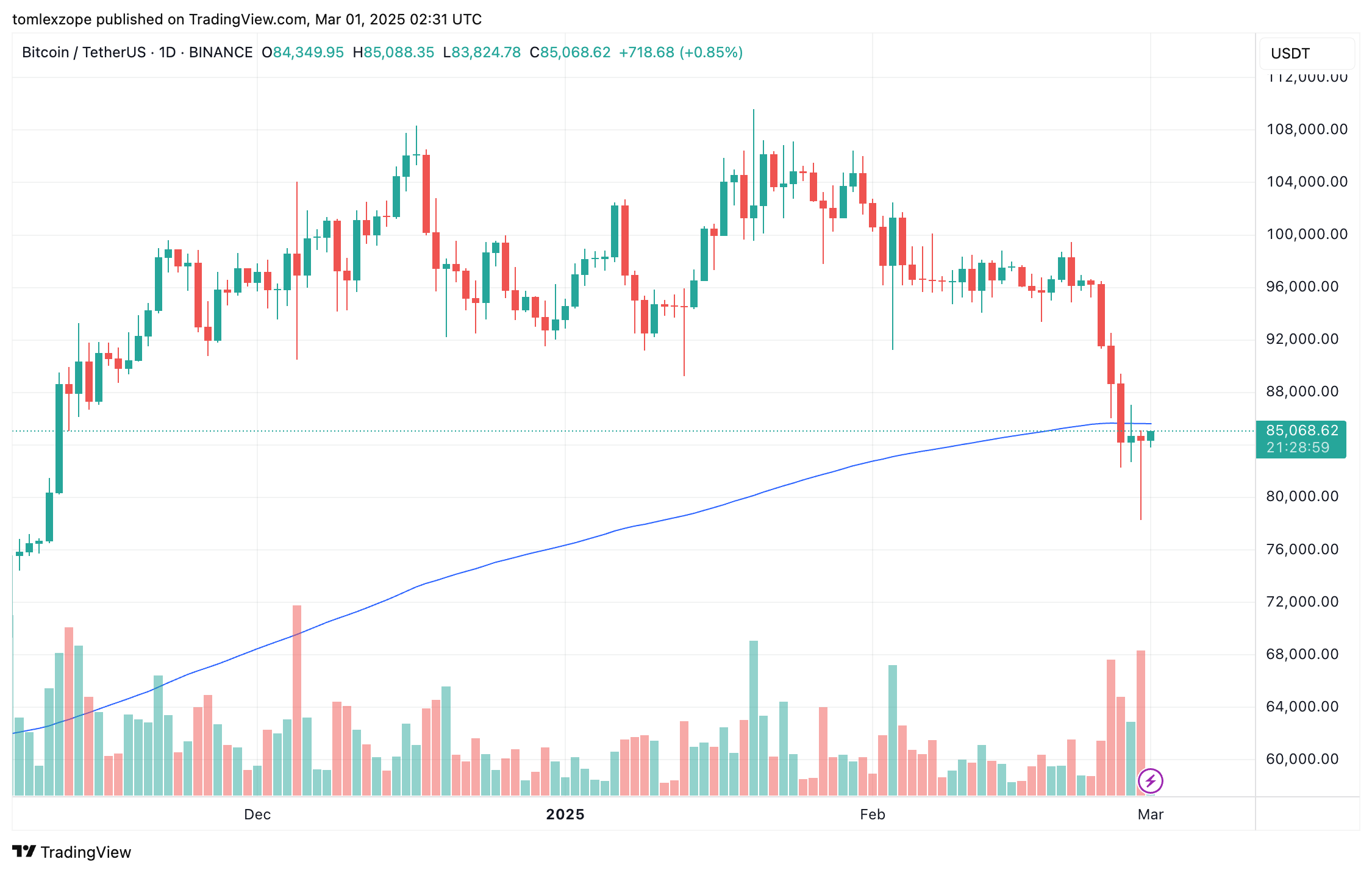 На момент написания этой статьи цена BTC составляет около 85 000 долларов, что не отражает существенного движения за последние 24 часа.