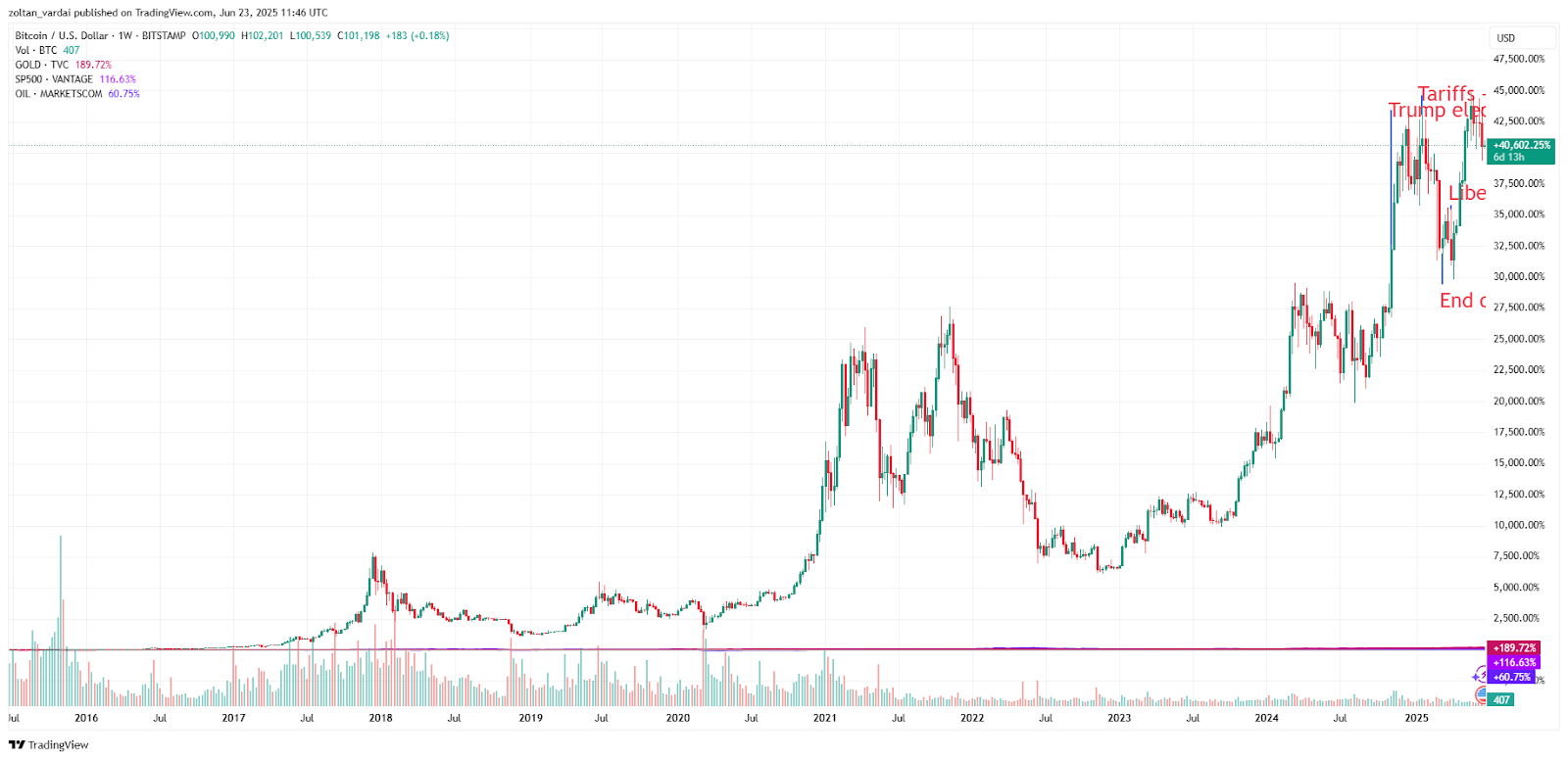 BTC, золото, нефть, S&P 500, 10-летняя диаграмма. Источник: cointelegraph/tradingview