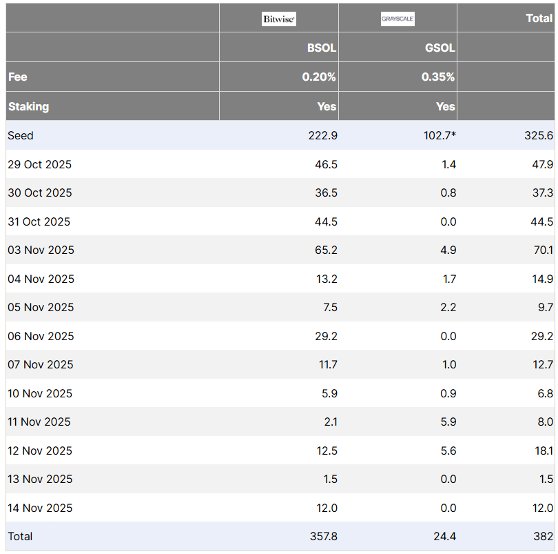 Спотовые ETF Solana (SOL) продолжают бросать вызов гравитации рынка криптовалют, генерируя положительный приток, несмотря на более широкий спад.