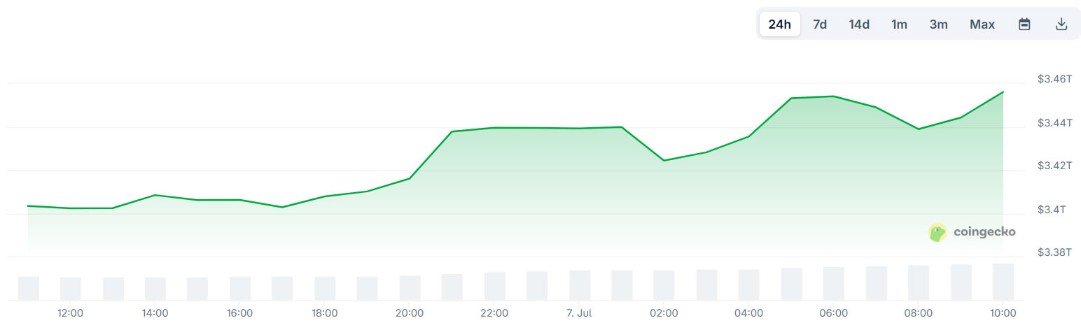 Тем не менее, «похоже, что рынки сплачиваются после того, как было обнаружено, что у странам будет больше времени для переговоров, прежде чем тарифы вступят в силу в начале августа», – сказал он Cointelegraph, добавив: «Если мы увидим хорошие цифры во вторник, то вполне вероятно, что рынки будут продолжать ралли».