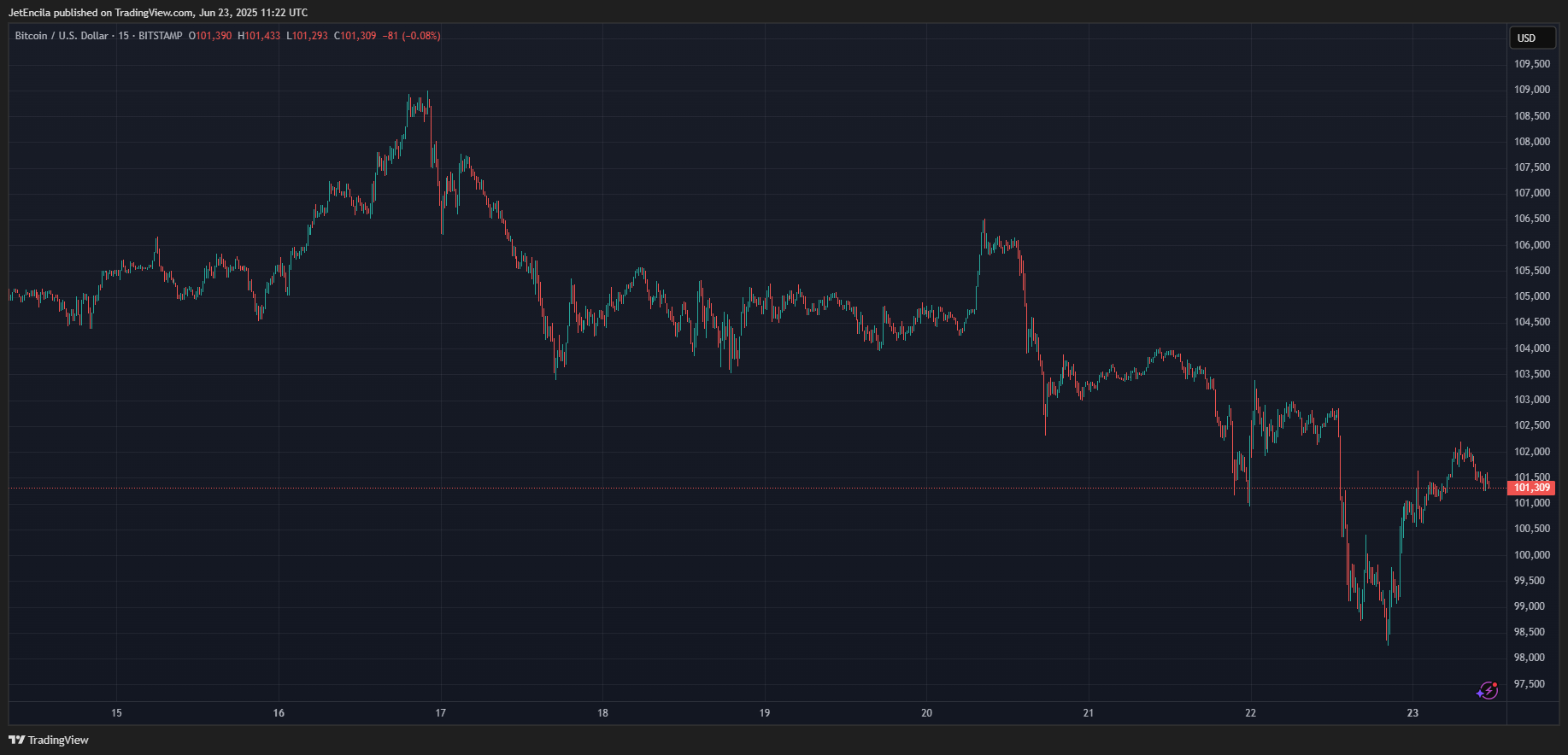 Средняя заплативная цена составила примерно 106 408 долл. США за монету. Биткоин упал более чем на 5% за последнюю неделю, торгуясь чуть выше 101 000 долларов.