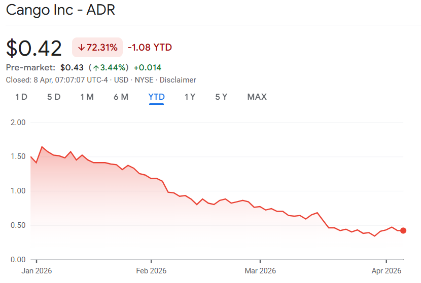 По данным Google Finance, цена акций Cango выросла на 3,44% на предрыночных торгах в среду, но с начала года упала примерно на 72%.