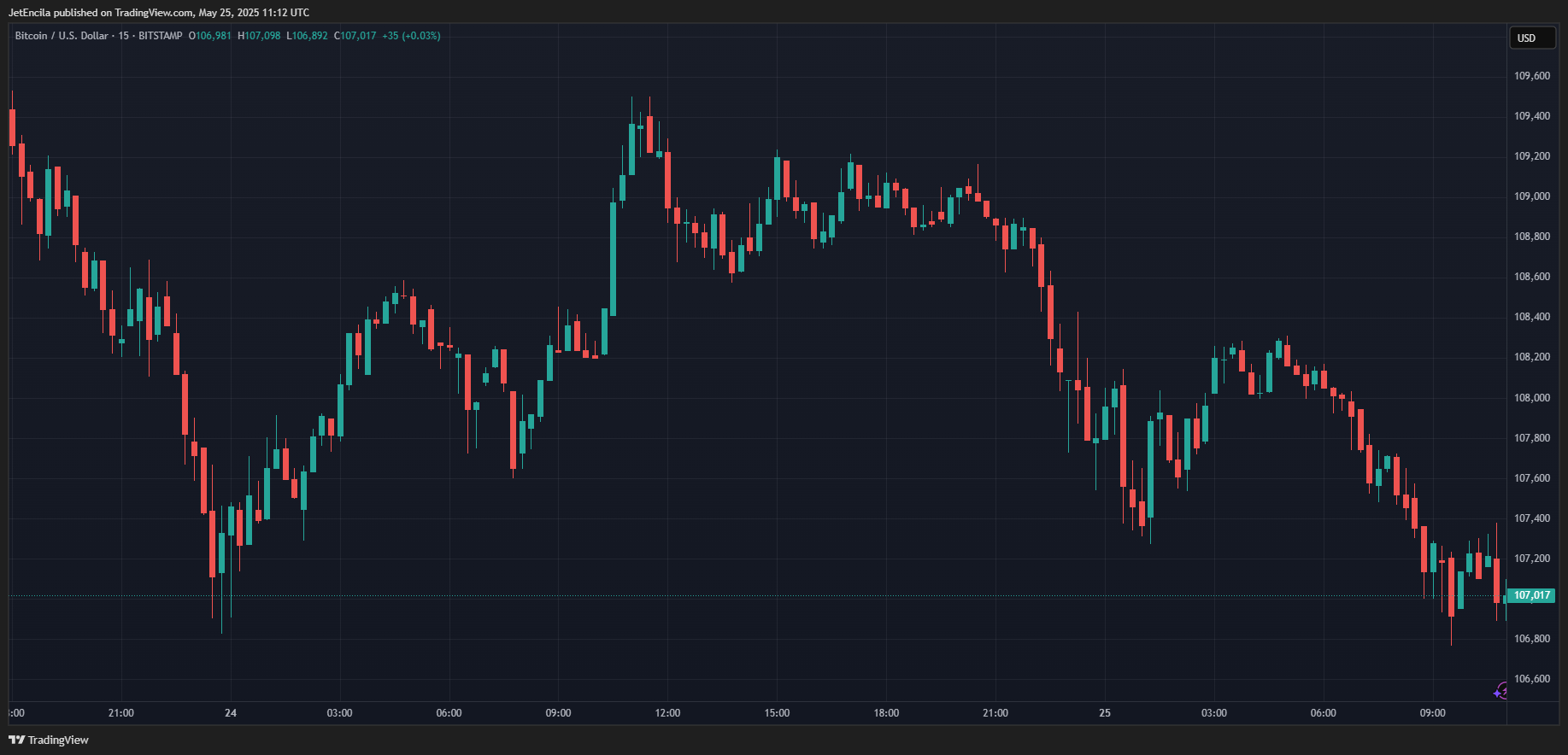BTC в настоящее время торгуется по 107 017 долларов. Диаграмма: Tradingview