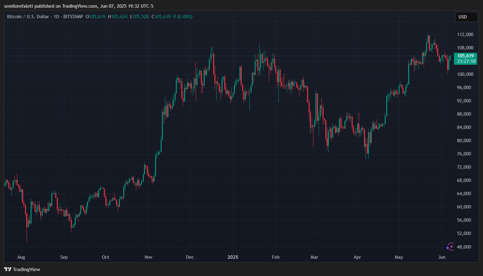 За последние 24 часа цены на биткоин вернулись выше 105 000 долларов США после резкого снижения цен в четверг, вызванном макроэкономическими давлением. Примечательно, что президент США Дональд Трамп и бывший политический союзник Элон Маск участвовали в публичной ссоре, которая усилила волатильность на рынке криптовалют, уже претерпевших корректирующий этап.