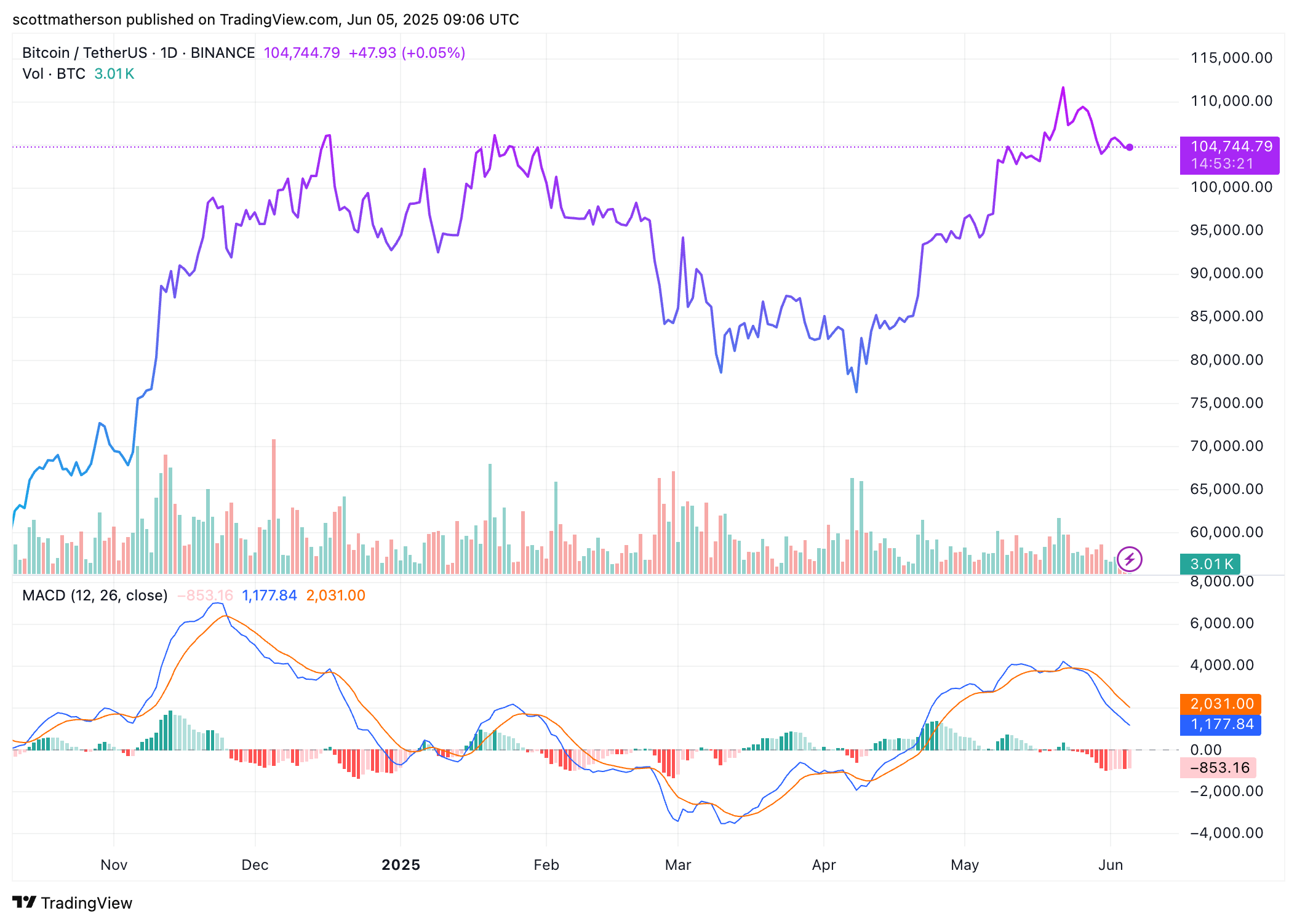 BTC Trading на уровне 104 744 долл. США на 1D -диаграмме |Источник: btcusdt на TradingView.com