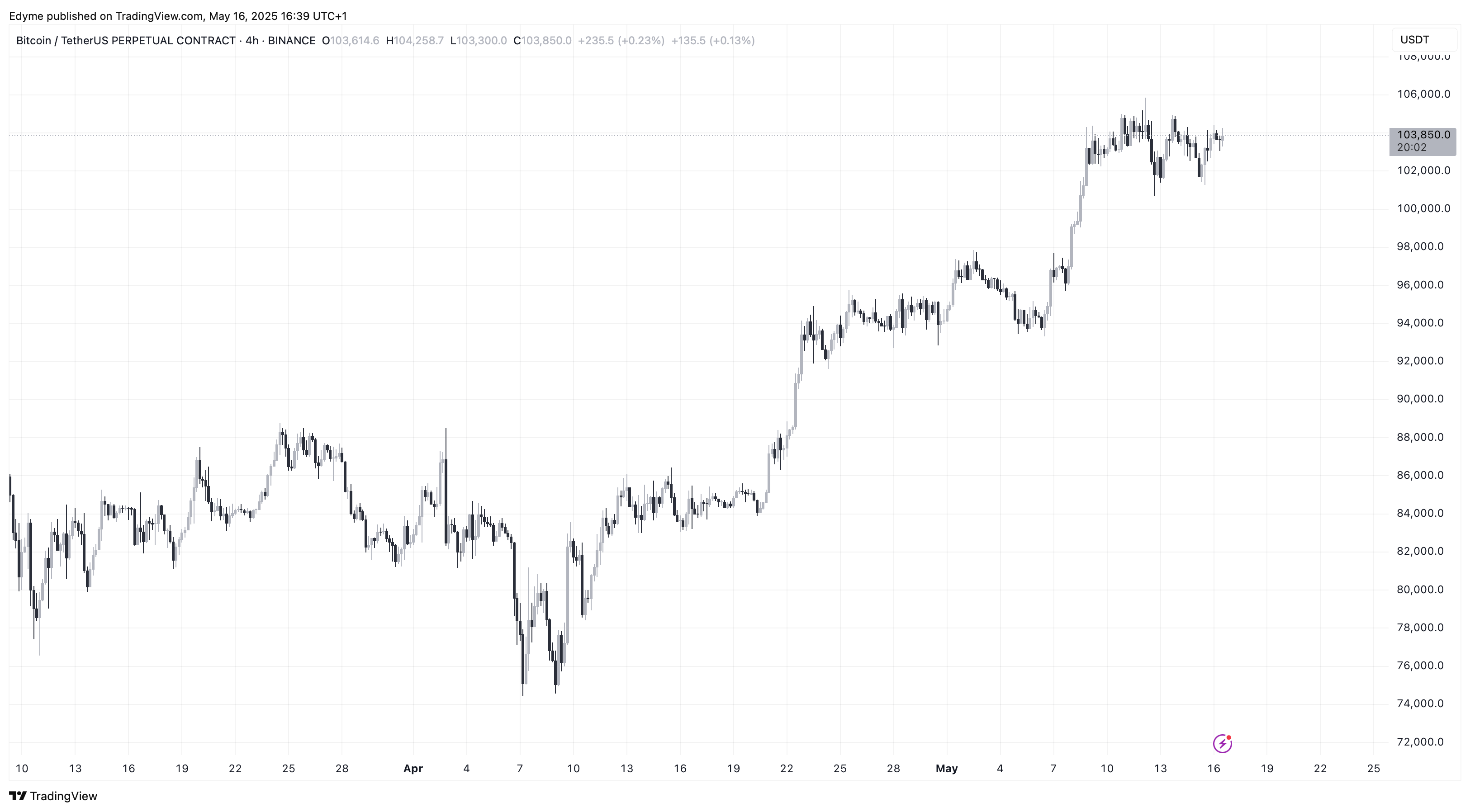 В начале этой недели биткоин пережил заметный всплеск, поднявшись выше отметки 104 000 долларов и зарегистрировав еженедельный прибыль почти на 10%. Однако после достижения этого уровня актив, по -видимому, столкнулся с сопротивлением, с замедлением импульса вверх и ценовым действием, оставшимися относительно плоскими в последние дни.