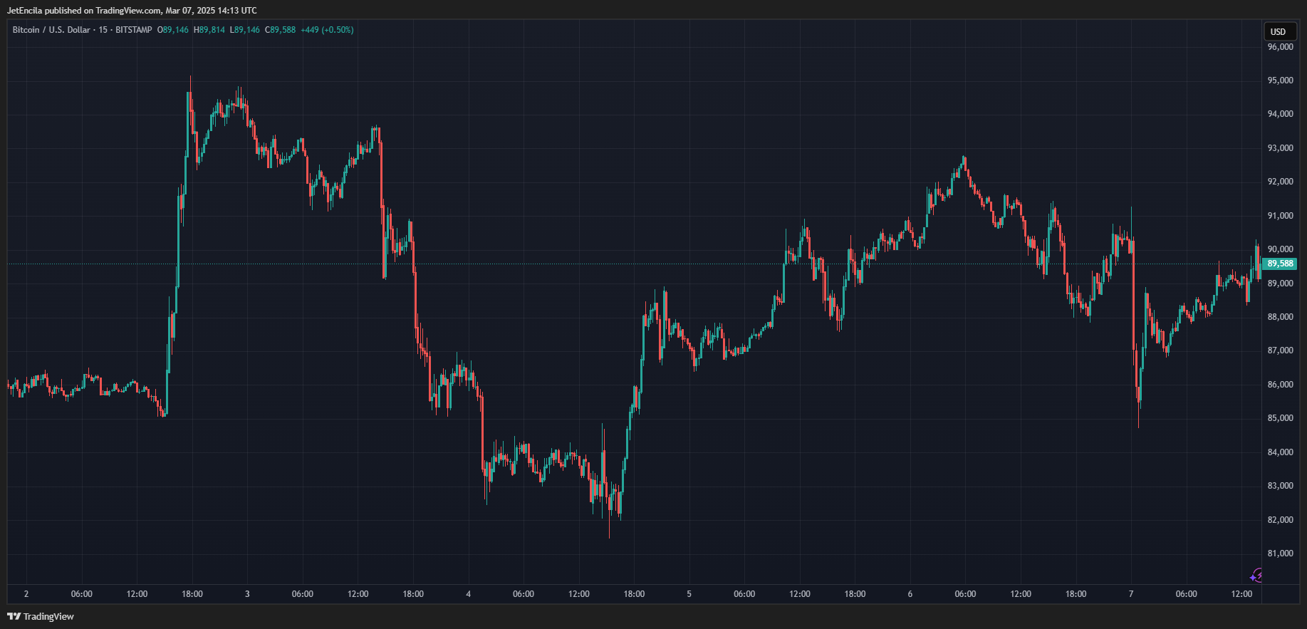 BTC в настоящее время торгуется по цене 89 588 долларов. Диаграмма: Tradingview
