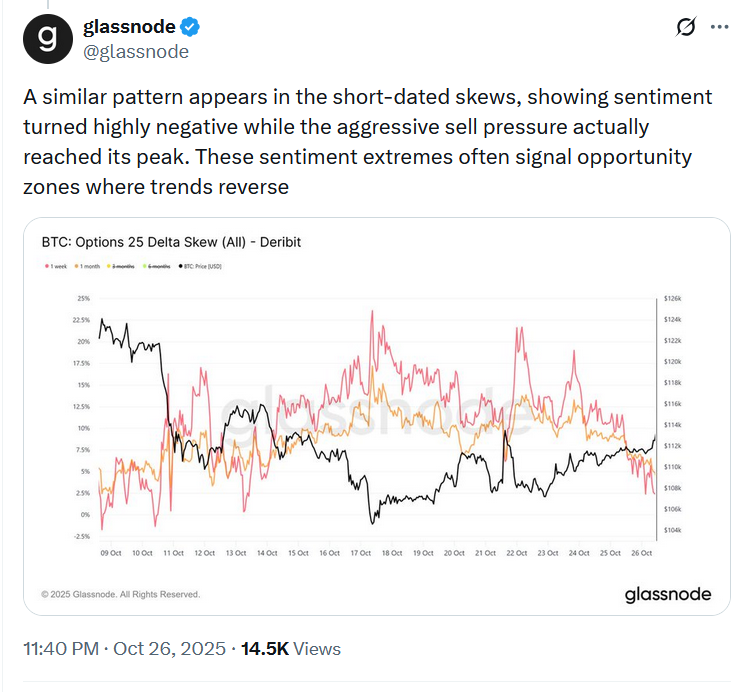 «Впервые с 10 октября спотовые и фьючерсные CVD [кумулятивная дельта объёма] выровнялись, что указывает на то, что агрессивное давление продавцов утихло за последние несколько дней», — говорится в сообщении, добавляя: