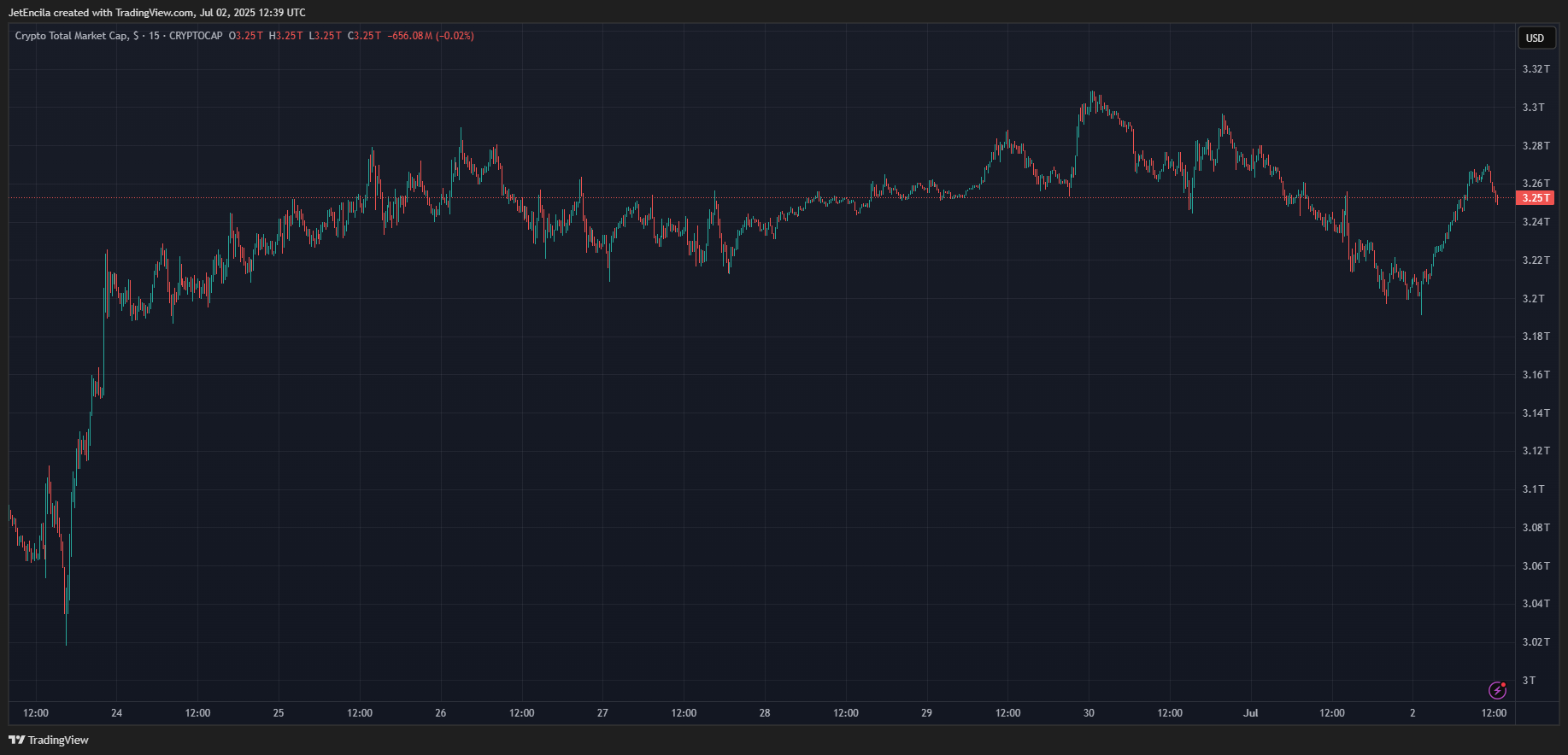 Общая рыночная капитализация криптовалюты в настоящее время составляет 3,25 триллиона долларов. Диаграмма: Tradingview