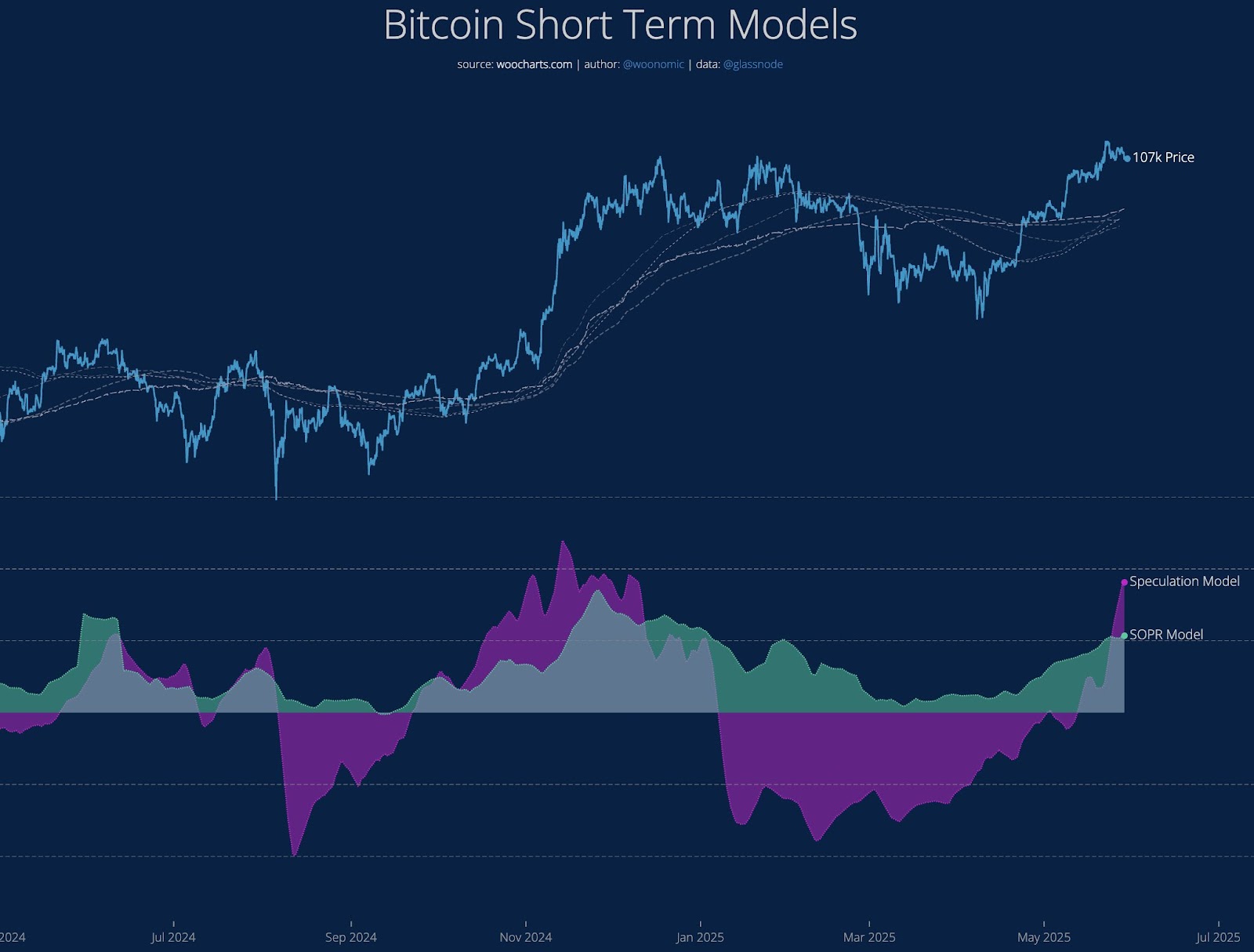 Ву сказал, что в краткосрочной перспективе «покойные спекулянты» занимают длинные позиции, в то время как потенциальная прибыль получает «готов к сброду», как видно в коэффициенте потраченной выходной прибыли биткоина (SOPR), что является мерой оплачиваемой цены, разделенной по проданной цену.