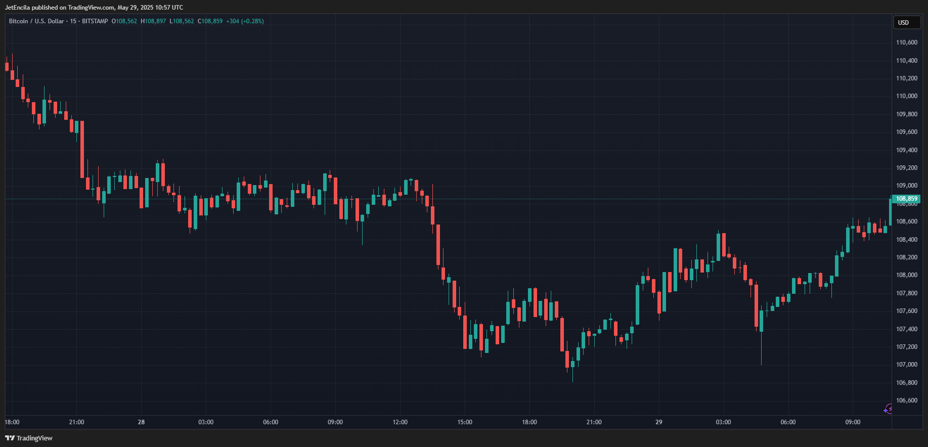 BTC в настоящее время торгуется на уровне 108 859 долларов. Диаграмма: Tradingview