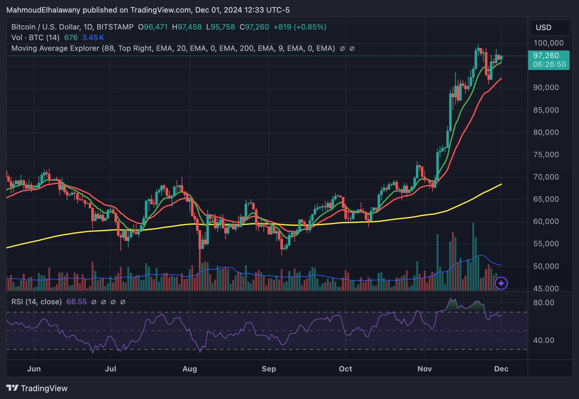 Аналитики терпеливо наблюдают за ценой биткоина в 100 000 долларов, что является важным психологическим уровнем. Однако о гонке к 100 тысячам долларов легче сказать, чем сделать: 22 ноября цена Биткоина превысила 99 000 долларов, а затем вернулась обратно к диапазону 96 000–98 000 долларов.