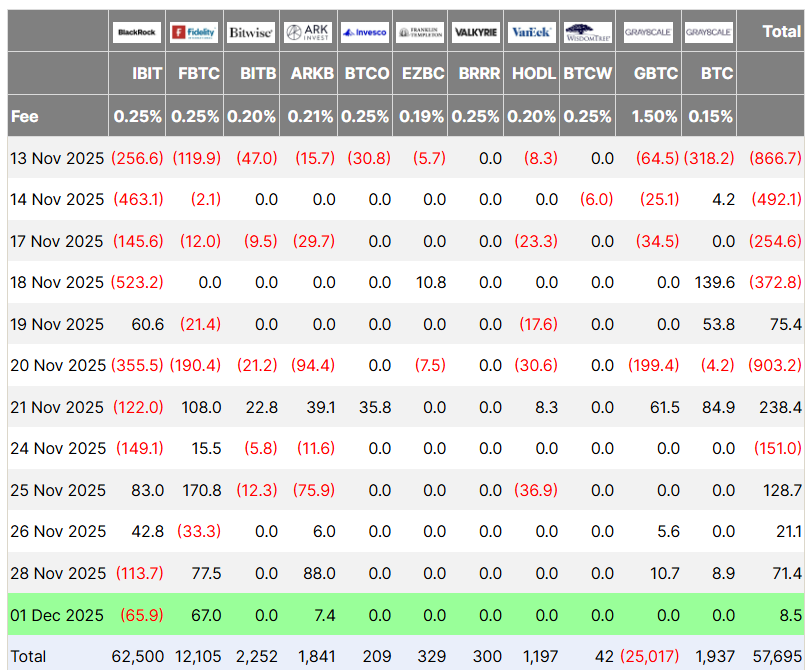 По данным Farside Investors, спотовые биткоин-ETF в США, один из основных драйверов роста биткоина в 2025 году, усилили существенное понижательное давление в ноябре, получив чистый отрицательный отток в $3,48 млрд во второй худший месяц за всю историю наблюдений.