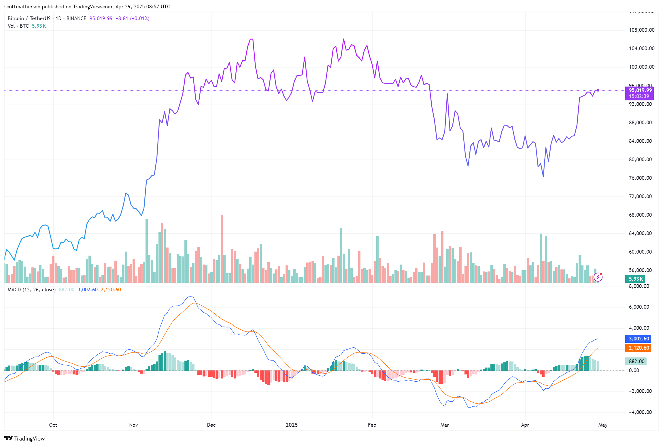 BTC Trading по цене $95,020 на 1D -диаграмме |Источник: btcusdt на TradingView.com