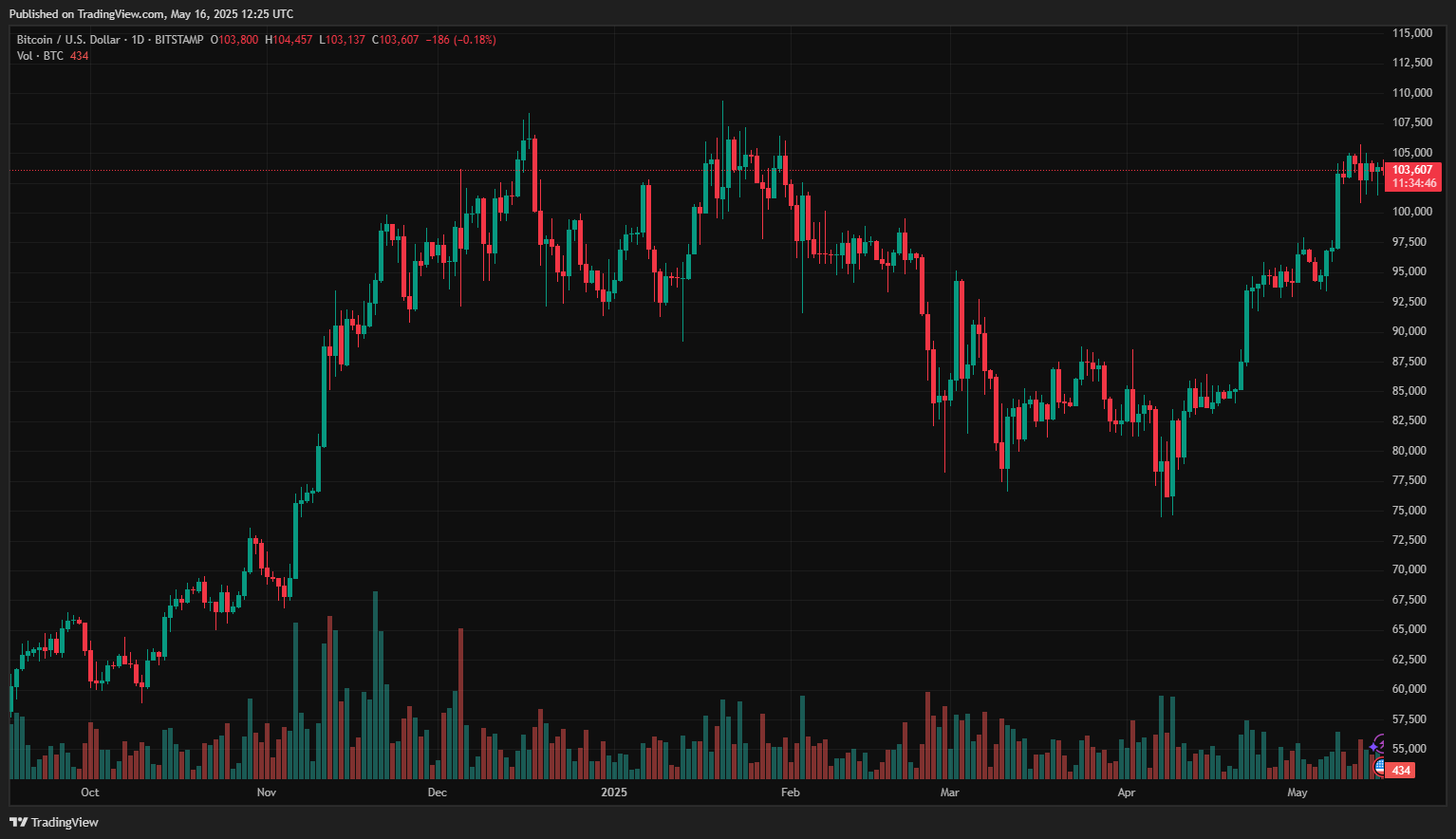 BTC в настоящее время торгуется по 103 607 долларов. Диаграмма: Tradingview