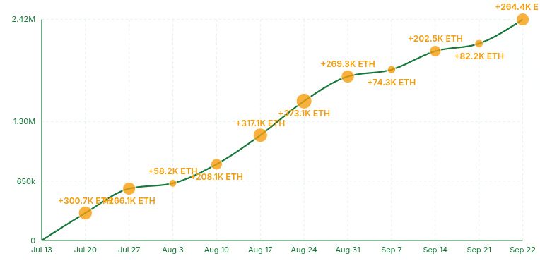 Bitmine Immersion Technologies, казначейская компания по криптовалюте, ориентированная на биткоин и эфир, говорит, что контролирует более 2% от общего объема предложения Ether после накопления 2,4 миллиона ETH.