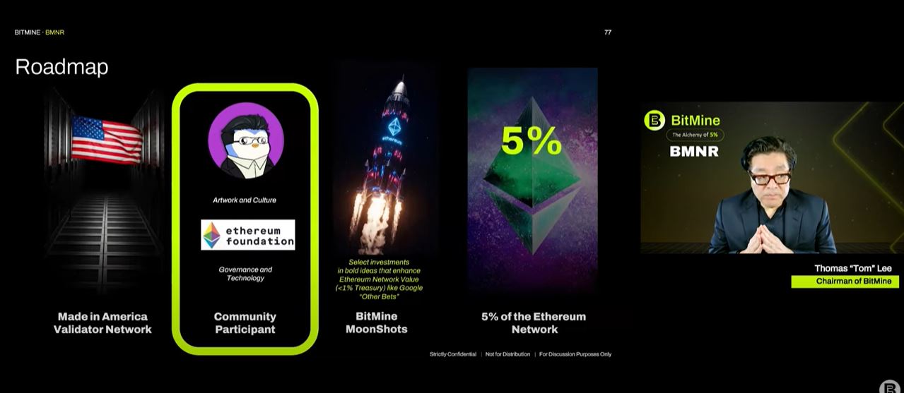 Во время презентации Ли подтвердил, что Bitmine владеет 600 000 эфиров на сумму более 2,2 миллиарда долларов.