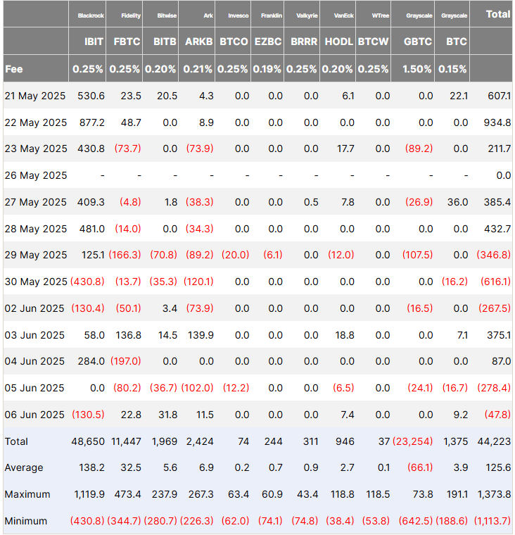 По данным Farside Investors, ETFS увидел отток на сумму более 47 миллионов долларов США от оттоков 67 миллионов долларов США, что было вторым днем подряд продажи после 278 миллионов долларов чистого оттока.