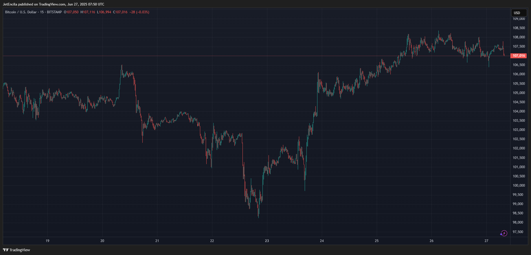 BTC в настоящее время торгуется на уровне 107 016 долларов. Диаграмма: Tradingview