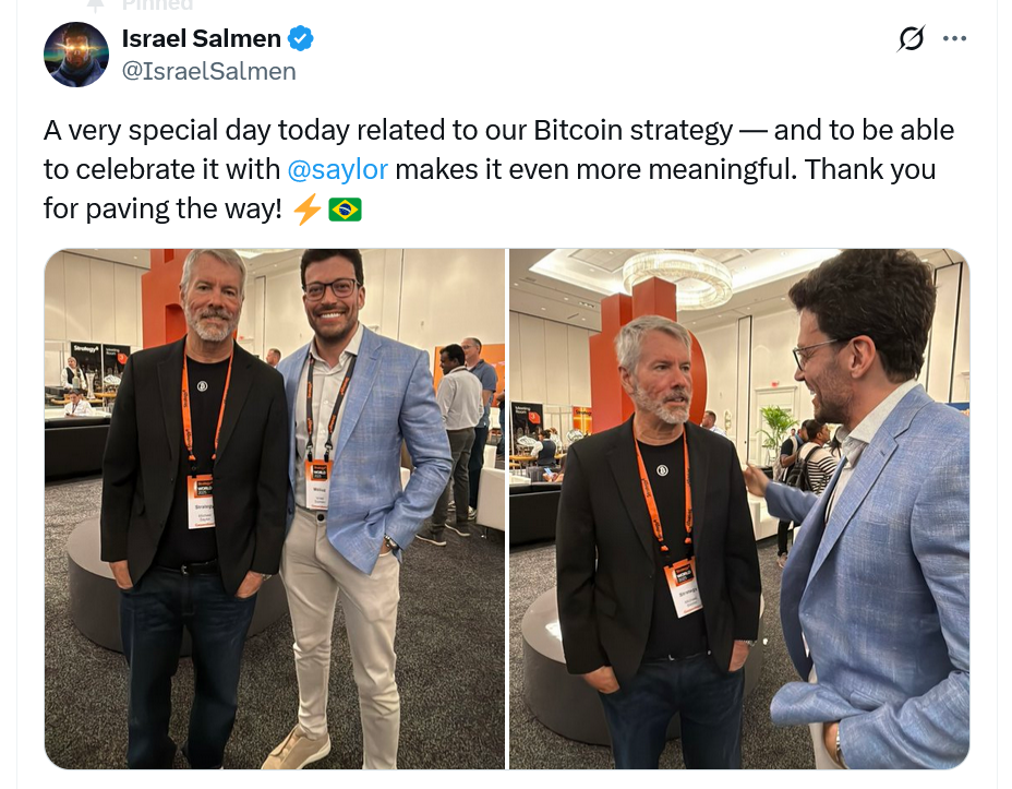 «Исторический день! Наши акционеры, по широкому большинству, одобрили трансформацию Méliuz в первую казначейство биткоин, указанную в Бразилии», – 1 мая из Израиля Салмен в X 15.