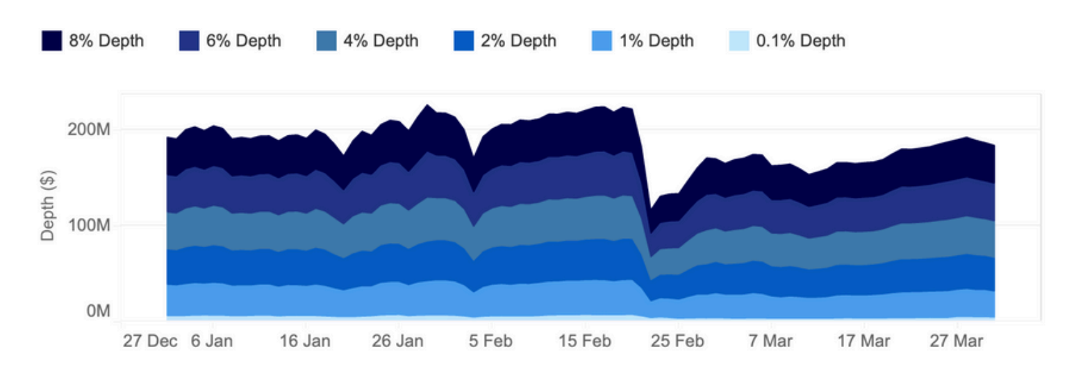 Ликвидность альткойна также восстановилась, хотя и в более медленном темпе, чем биткоин. Глубина рынка для 30 лучших альткойнов по рыночной капитализации восстановилась более чем на 80% своих уровней до HACK.