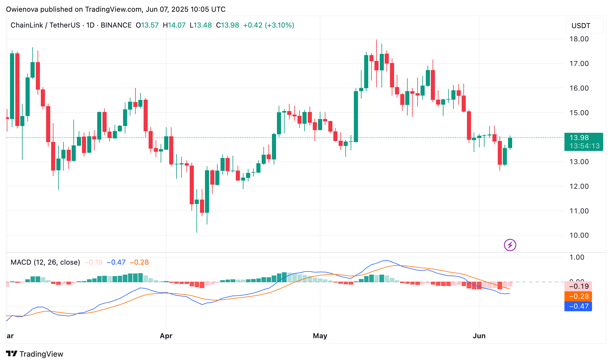 Торговля ссылками по цене $13,98 на 1D -диаграмме |Источник: LinkusDT на TradingView.com